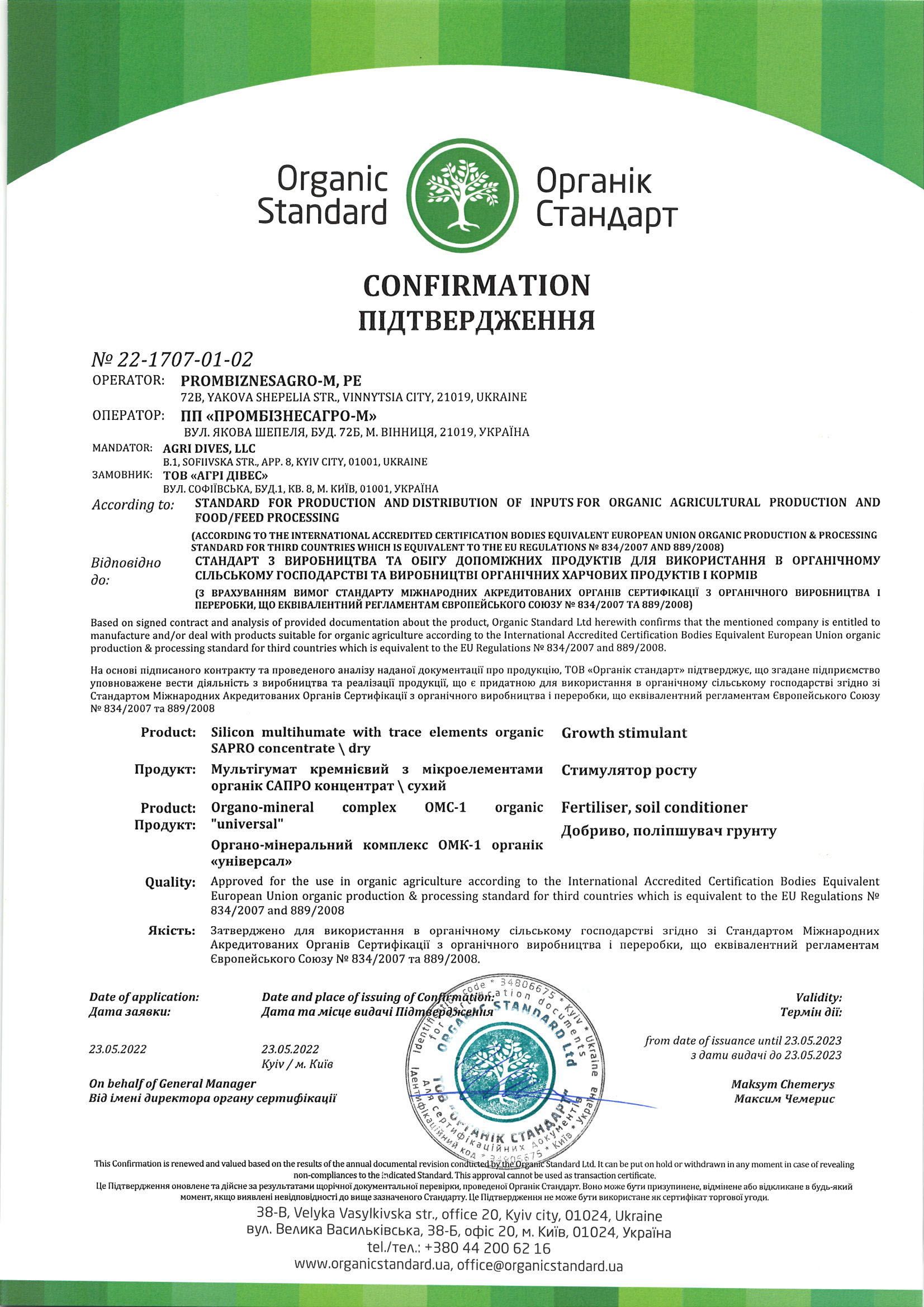 В финале конкурса UNIDO Global Chemical Leasing Award – 2021, который проходил в Вене, удобрение AGRI DIVES (сульфат аммония + Бентонит) получило второе место в номинации «ИННОВАЦИЯ». В конкурсе участвовало 92 участника из 21 страны Мира.